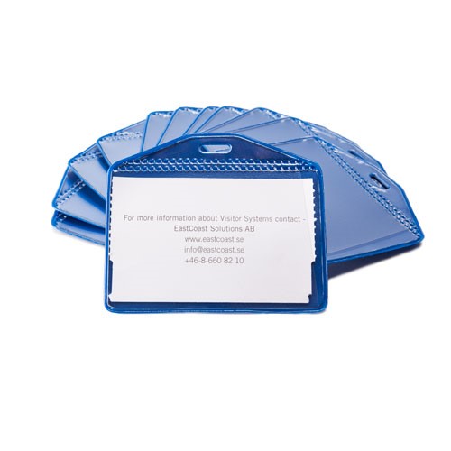 - Blå plastficka med instickshål på sidan